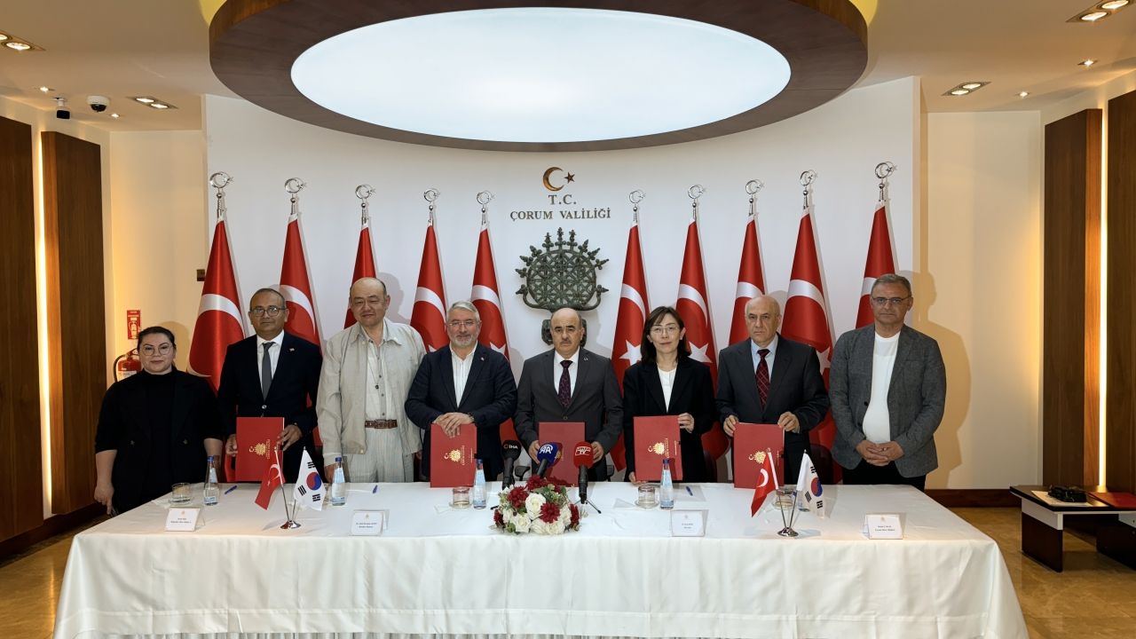 ÇORUM (AA) - Hititlerin başkenti Hattuşa ile Alacahöyük ve Şapinuva gibi antik kentlere ev sahipliği yapan Çorum'da arkeolojik kazılarda ortaya çıkarılan tarihi eserlerin, Güney Kore'nin başkenti Seul ile Gimhae kentlerinde 6 ay boyunca sergilenmesiyle ilgili protokol imzalandı.
