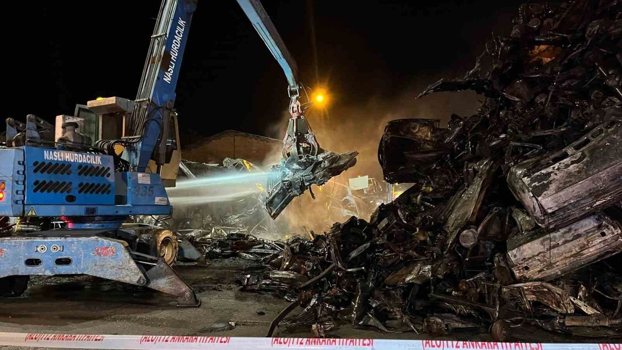 Ankara Hurdacılar Sanayi Sitesinde çıkan yangın paniğe neden oldu, yaklaşık 100 hurda araç yandı.