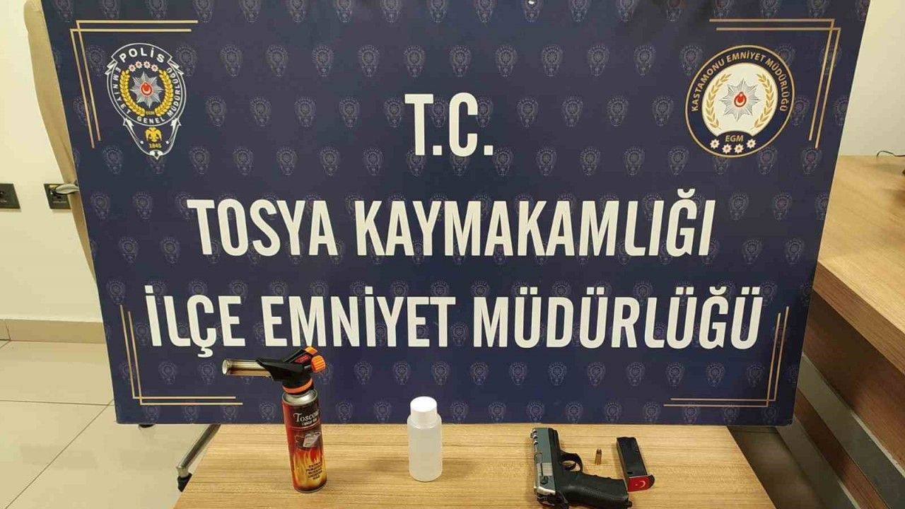 Edinilen bilgiye göre, Kastamonu’nun Tosya ilçesinde 2023 yılında, Kastamonu Narkotik Suçlarla Mücadele Şube Müdürlüğü ile Tosya İlçe Emniyet Müdürlüğü ekipleri, uyuşturucu kullanıldığı ihbarı yapılan bir eve operasyon düzenledi. Operasyonda iki ikamet, bir araç ve 8 şansın üstünde arama yapıldı. Yapılan aramalarda 1 adet ruhsatsız tabanca, 220 mililitre uyuşturucu madde olduğu değerlendirilen sıvı, 3 adet uyuşturucu içiminde kullanılan düzenek ile 5,75 gram metamfetamin, 5,46 gram kokain ve 2 adet ecstasy hap ele geçirildi.