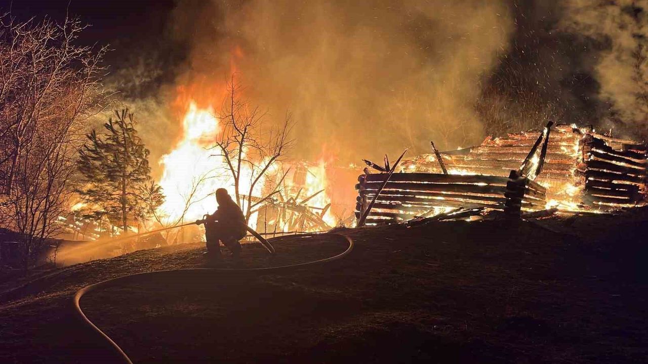 Yangında iki katlı ev ve odunluk kullanılamaz hale gelirken, olayla ilgili inceleme başlatıldı.