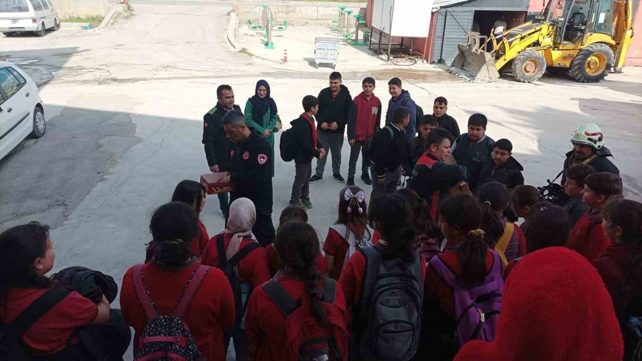 Sungurlu Belediyesi İtfaiye Müdürlüğü ekipleri, kendilerini ziyaret eden Atatürk Ortaokulu öğrencilerini yangın konusunda bilgilendirdi.