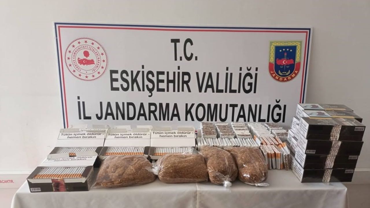 Eskişehir’de jandarma ekipleri tarafından düzenlenen operasyonda, 2 kilogram açık kıyılmış tütün, 4 bin 240 adet içi tütün doldurulmuş makaron ve 2 bin 400 adet boş makaron ele geçirildi.