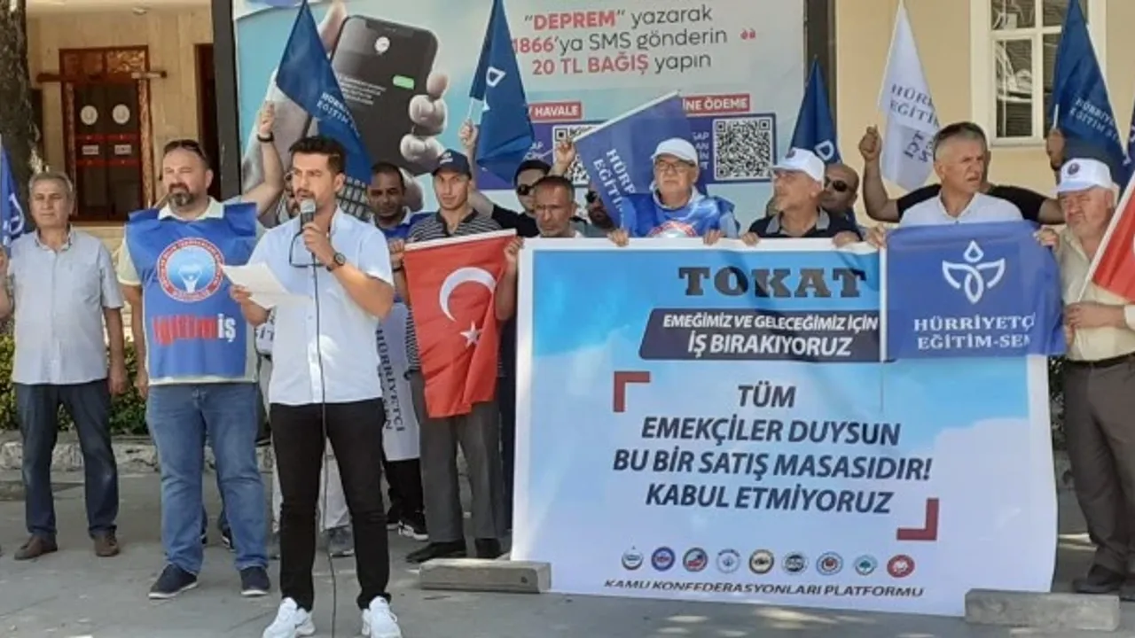 Kamu Konfederasyonları Platformu'na bağlı Yurt-Sen, Anadolu Sen Konfederasyonu, Bask Konfederasyonu, Çalışan Sen Konfederasyonu, Hak-Sen Konfederasyonu, Hür-Sen Konfederasyonu, Şehit Gazi-Sen Konfederasyonu ve Tüm Emekliler Sendikası Hükümet'in Toplu Sözleşme görüşmelerinde memura önerdiği zammı protesto etmek için ülke genelinde 1 günlük iş bırakma kararı aldı. Kamu Konfederasyonu Platformuna bağlı Sendikaların Tokat Şube Başkanları ve üyeleri Tokat Cumhuriyet Meydanında toplanarak basın açıklaması yaptı. Kamu Konfederasyonları Platformu adına Hürriyetçi Eğitim-Sen Tokat Şube Başkanı Harun Kablan yaptı.
