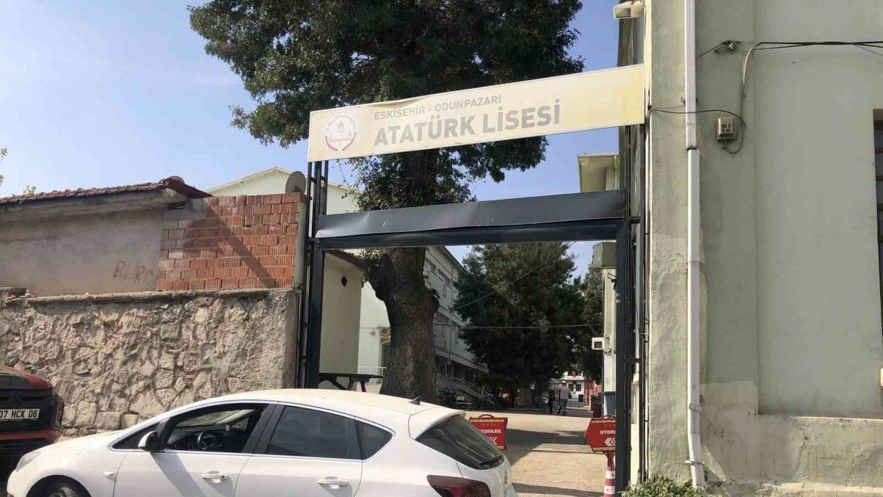 Eskişehir Atatürk Lisesi’nin kepenkli kapısı, bir kamyon kasasının takılması sebebiyle zarar gördü.