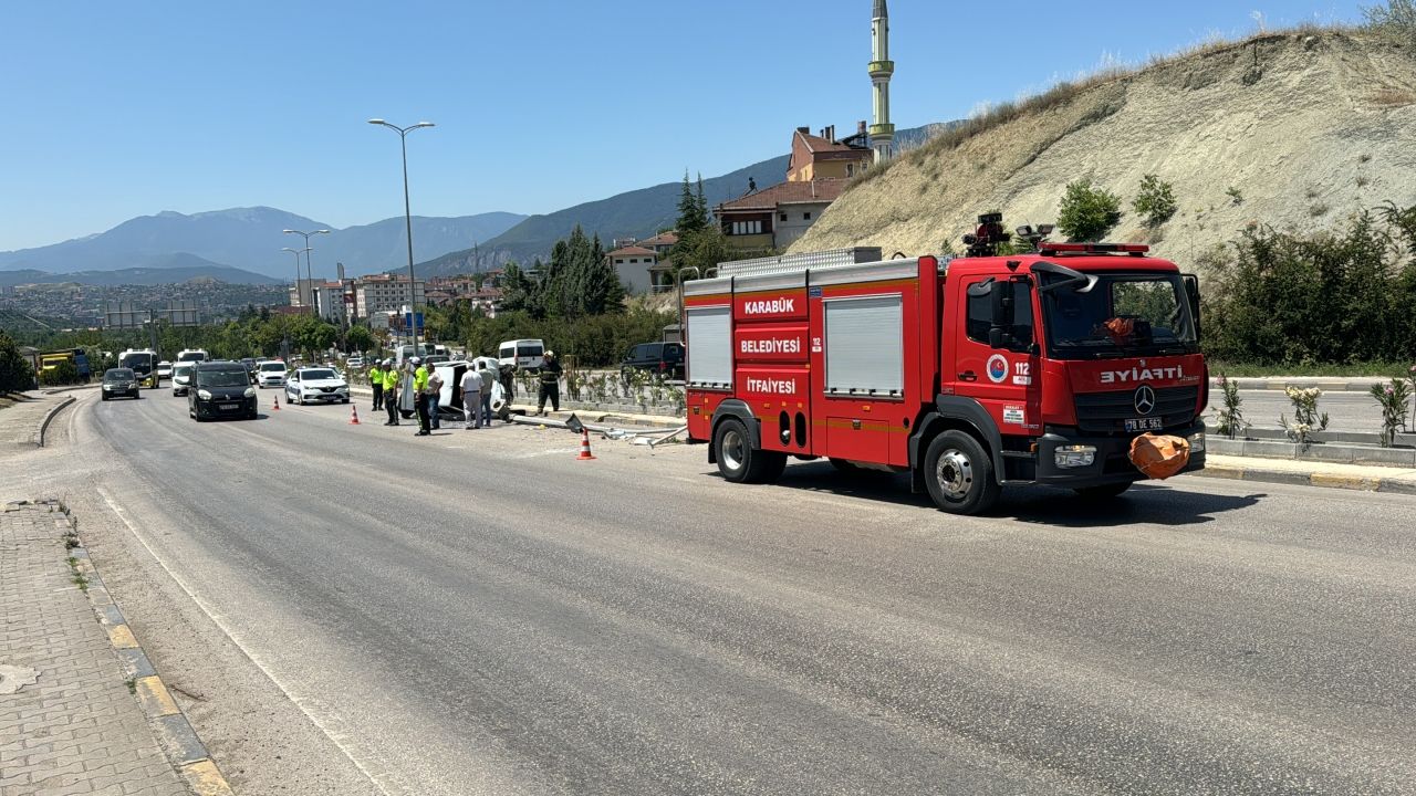 KARABÜK (AA) - Karabük'te aydınlatma direğine çarpan otomobilin devrilmesi sonucu sürücü yaralandı.