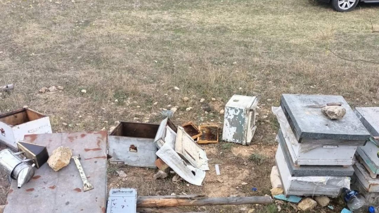 Kale köyde Erol Akın’a ait arazide bulunan arı kovanları, ayılar tarafından parçalandı.