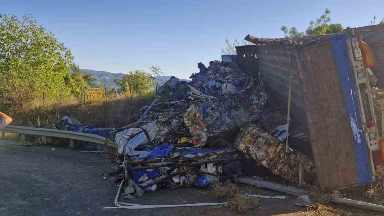 Karabük’te hurda yüklü tırın devrilmesi sonucu meydana gelen trafik kazasında 1 kişi yaralandı.