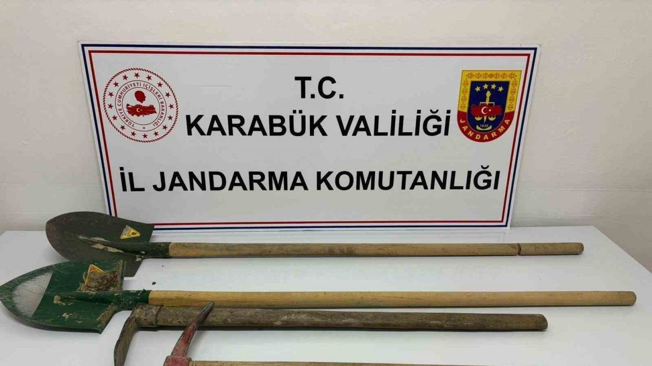 Edinilen bilgiye göre, Karabük İl Jandarma Komutanlığı ekipleri tarafından Yenice ilçesinde yapılan operasyonda izinsiz kazı yapan 3 kişi suçüstü yakalandı. Şahıslarla birlikte kazma, çapa ve 2 adet kürek ele geçirildi. Gözaltına alınan 3 şüpheli, jandarmadaki işlemlerinin ardından adli mercilere sevk edildi.
