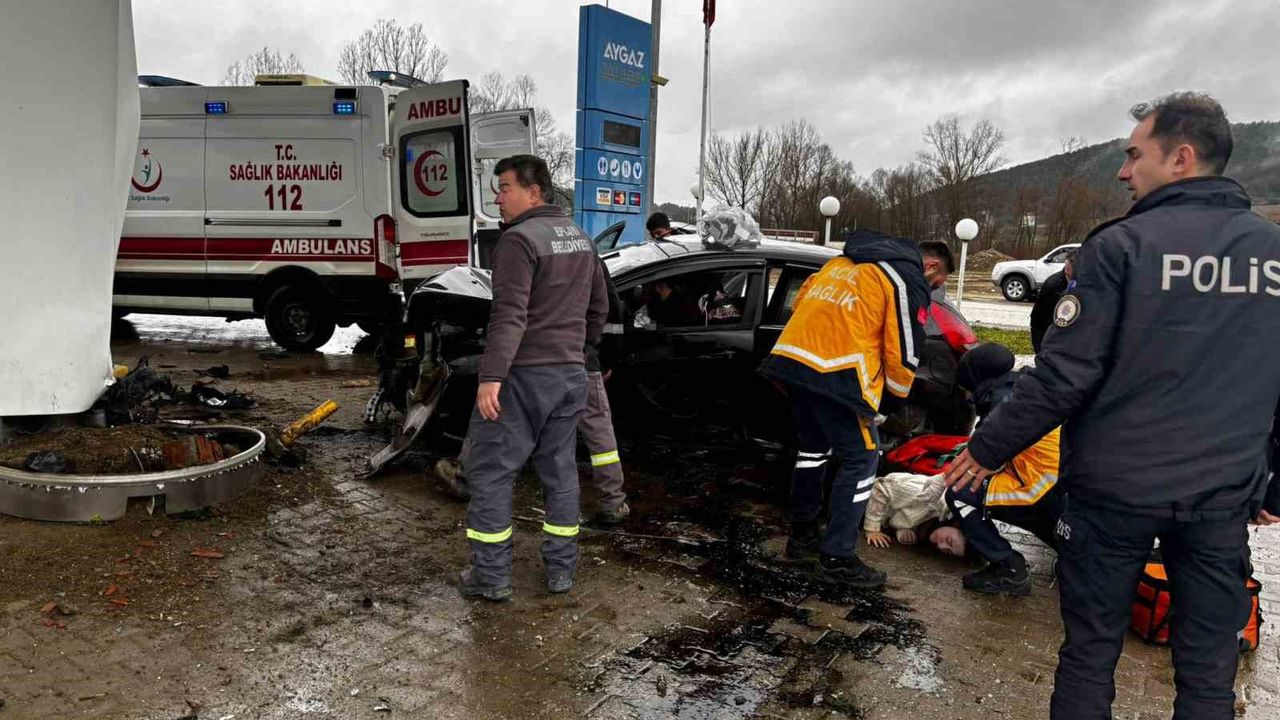 Karabük'ün Eflani ilçesinde kontrolden çıkan otomobilin LPG istasyonundaki kolona çarpması sonucu 5 kişi yaralandı.