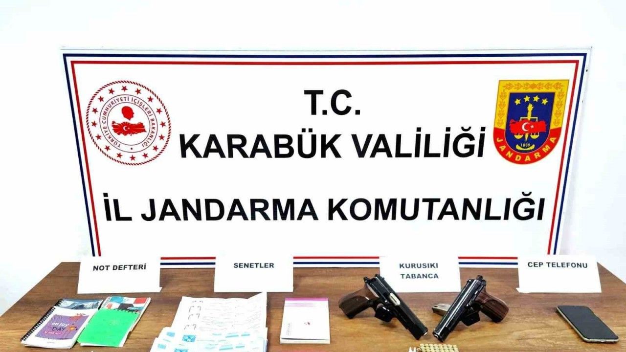 Soruşturma kapsamında Karabük merkezde gerçekleştirilen operasyonda, şüphelilerin ikametlerinde yapılan aramalarda 4 adet borç-alacak defteri, 18 adet borç notu, 81 adet boş senet, 2 adet kurusıkı tabanca, bu tabancalara ait 2 adet şarjör, 44 adet kurusıkı fişeği ve 1 cep telefonu ele geçirildi.