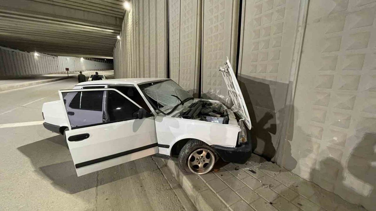 Karaman'da kontrolden çıkarak karşı şeride geçen otomobil, alt geçidin duvarına çarparak durabildi. Kazada yaralanan olmazken, araçta maddi hasar oluştu.