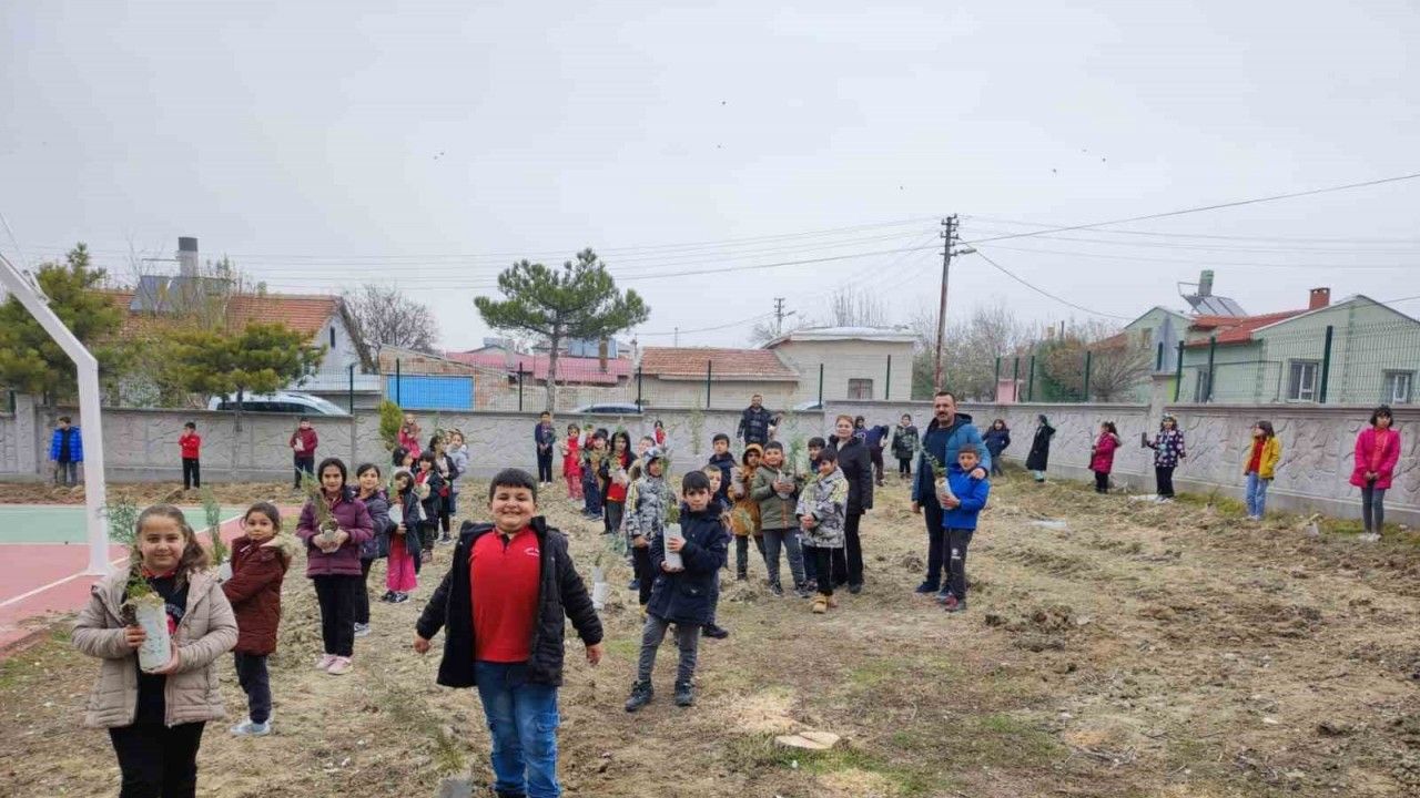 Konya’nın Karapınar ilçesinde ilk ve ortaokul öğrencileri Çevreme Duyarlıyım Değerlerime Sahip Çıkıyorum (ÇEDES) projesi kapsamında 450 adet fidanı toprakla buluşturdu.