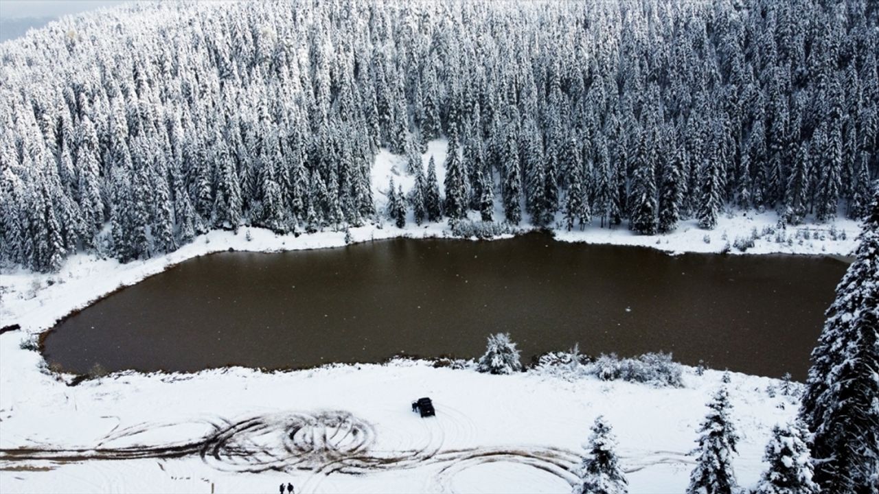 Kar yağışı, orman dokusu açısından zengin olan ve içinde gölet de barındıran yaylanın güzelliğine güzellik kattı.