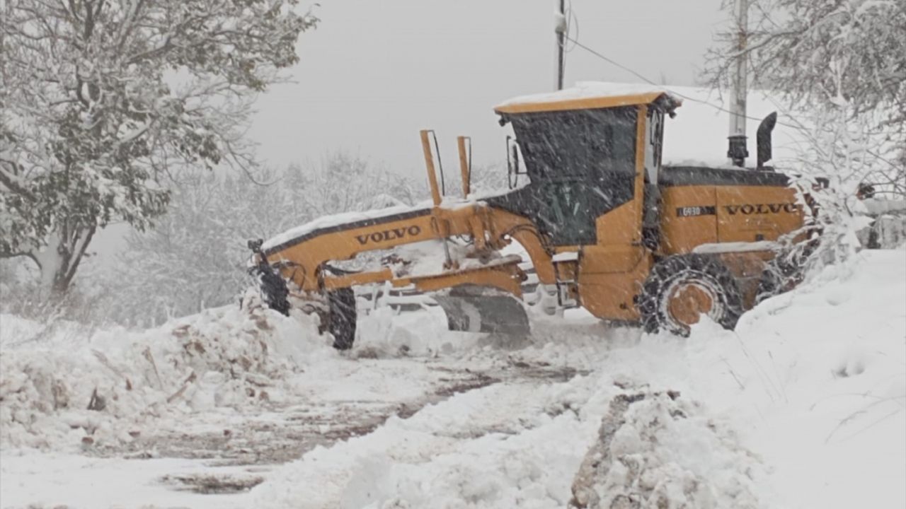 Kar yağışının devam ettiği bölgede ekiplerin kar küreme çalışması sürüyor.