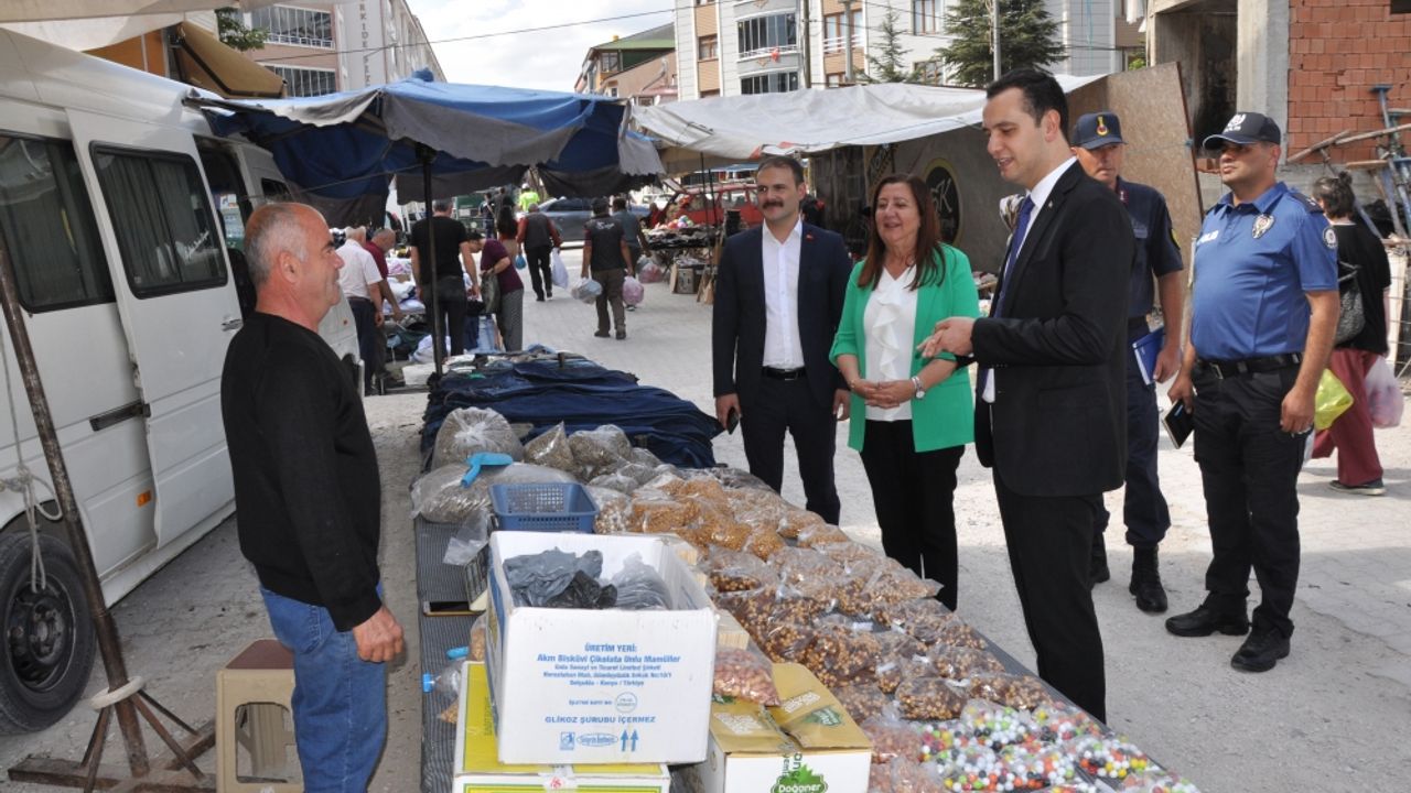AMASYA (AA) - Gümüşhacıköy Kaymakamı Baha Büyükkaymakcı ve Belediye Başkanı Zehra Özyol, ilçede cuma günleri kurulan sebze pazarını ziyaret etti.
