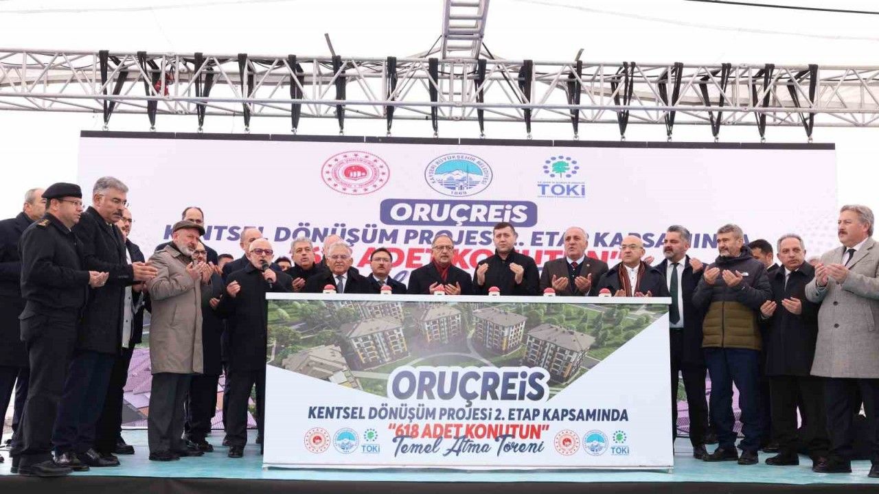 Büyükşehir Belediyesi ve TOKİ işbirliği ile Oruçreis Mahallesi Keresteciler Sitesi Yanı’nda yapılacak olan Oruçreis Kentsel Dönüşüm Projesi 2’nci Etap kapsamında 618 Adet Konutun Temel Atma Töreni’ne Çevre, Şehircilik ve İklim Değişikliği Bakanı Mehmet Özhaseki, Kayseri Valisi Gökmen Çiçek, AK Parti Kayseri Milletvekilleri Murat Cahid Cıngı, Bayar Özsoy, MHP Kayseri Milletvekili Baki Ersoy, Kayseri Büyükşehir Belediye Başkanı Dr. Memduh Büyükkılıç, TOKİ Başkanı Ömer Bulut, AK Parti Kayseri İl Başkanı Fatih Üzüm ve ilçe belediye başkanları ve vatandaşlar katıldı.