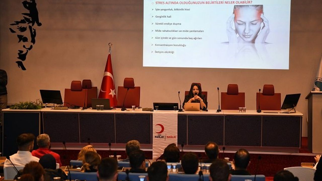 Özpoyraz, Büyükşehir personeli ile kişilerin stres altında olduklarının belirtileri ve bu durumu en aza nasıl indirgenebileceği hakkında bilgiler paylaştı. Personel tarafından yoğun ilgi gösterilen seminer, soru cevap şeklinde devam etti.