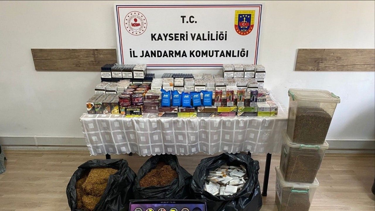 Edinilen bilgiye göre, Kayseri İl Emniyet Müdürlüğü Kaçakçılık ve Organize Suçlarla Mücadele Şube Müdürlüğü ve Kocasinan ilçe Jandarma Komutanlığı ekipleri kaçakçılıkla mücadele çerçevesinde çalışma yaptı. Ekipleri tarafından Kocasinan ilçesine bağlı Hoca Ahmet Yesevi Mahallesi’nde yapılan çalışmalarda; 20 bin 980 adet içi tütün doldurulmuş makaron, 20 kilogram sarmalık kıyılmış tütün, 9 adet elektronik sigara ve 39 adet kuru sıkı tabanca fişeği ele geçirilirken, T.B. ve T.E. gözaltına alındı.
