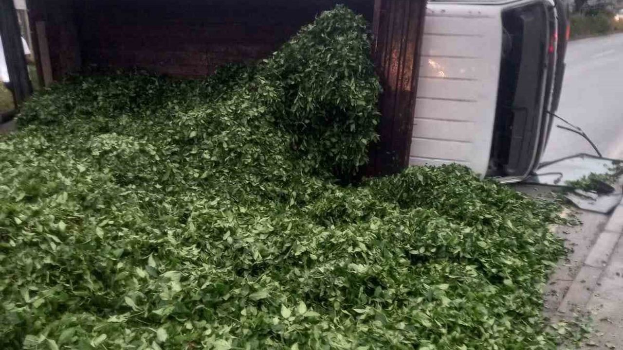 Trabzon Araklı ilçesi Kaşıkçı mevkiinde yaşanan trafik kazasında ÇAYKUR’a çay taşıyan bir kamyon yağmur nedeniyle kayganlaşan yolda sürücünün direksiyon hakimiyetini kaybetmesi sonucu yola devrildi. 2 kişinin yaralandığı kaza sonrası yola saçılan kamyon kasasındaki 10 ton yaş çay özel bir çay fabrikasına ait çay süpürme aracıyla yoldan temizlenerek ÇAYKUR’a ait Araklı’daki çay fabrikasına teslim edildi.