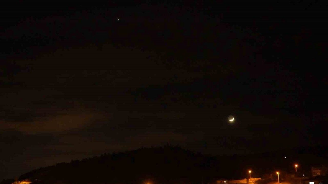 Kırıkkale semalarında akşam saatlerinde hilal şeklindeki Ay ile Venüs gezegeni birlikte görüntülendi.