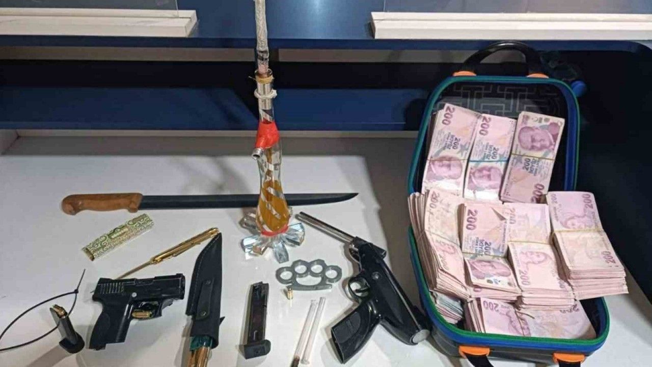 Edinilen bilgiye göre, İl Emniyet Müdürlüğü Asayiş Şube ekipleri, Cumhuriyet Başsavcılığı koordinesinde yürütülen soruşturma kapsamında, ’kişiyi hürriyetinden yoksun bırakma’, ’darp’ ve ’tehdit’ suçlarına karıştığı Ö.Y., O.Ş., Ş.Y. ve F.D.’yi yakaladı. Şüphelilerin ikametlerinde yapılan aramalarda 1 adet tabanca, 1 adet havalı tabanca, 2 şarjör, 14 fişek, 3 kesici alet, 1 muşta, 1 nargile düzeneği, 2 uyuşturucu kullanmaya aparatı ve 1 plastik kelepçe ele geçirildi.