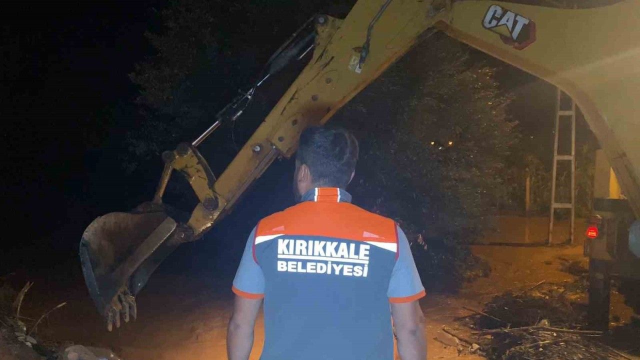 Kırıkkale’de etkili olan şiddetli sağanak yağışın ardından derelerde taşkınlar meydana geldi, bazı sokaklar çamurla kaplandı. Belediye ekipleri seferber olarak gece boyunca yürüttükleri yoğun mesaiyle yolları yeniden ulaşıma açtı, sel sularına kapılmak üzere olan bir kaplumbağayı da kurtardı.