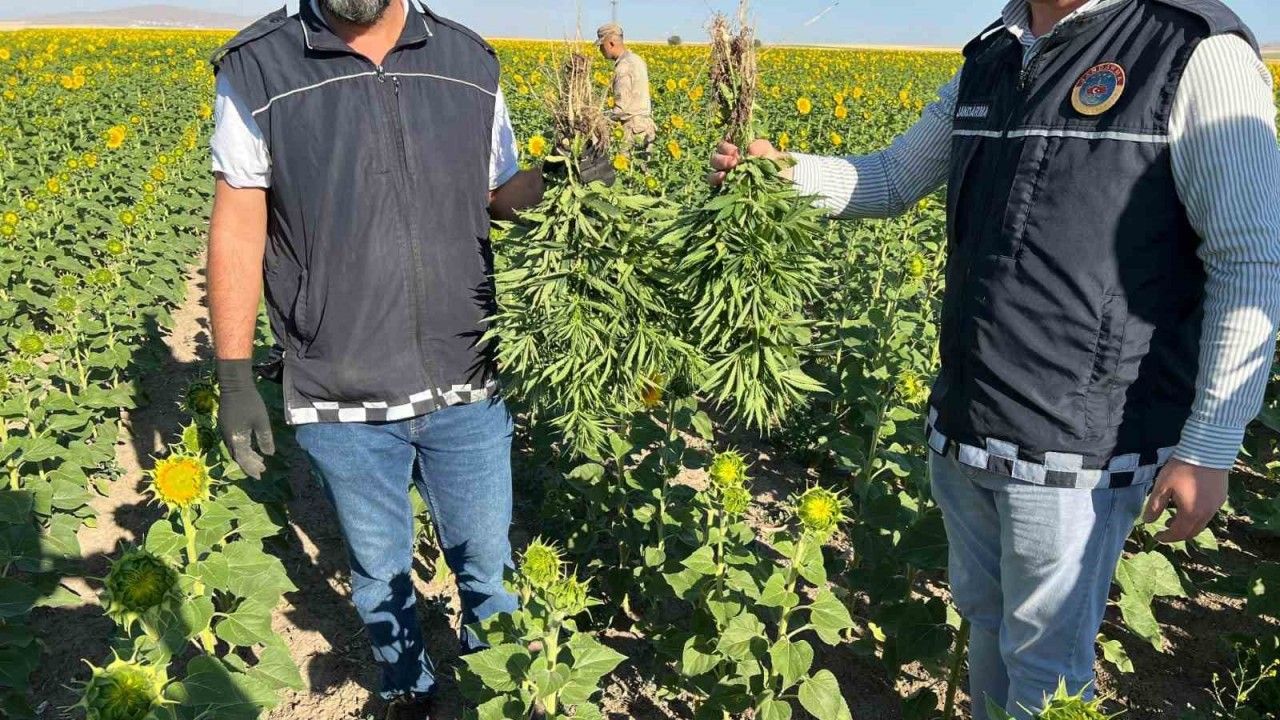 KIRŞEHİR (İHA) – Kırşehir’de bir ayçiçeği tarlasında yasa dışı kenevir yetiştirildiği ihbarı üzerine jandarma ekiplerince düzenlenen operasyonda kenevir bitkisi ele geçirilirken 2 tarla işçisi gözaltına alındı.