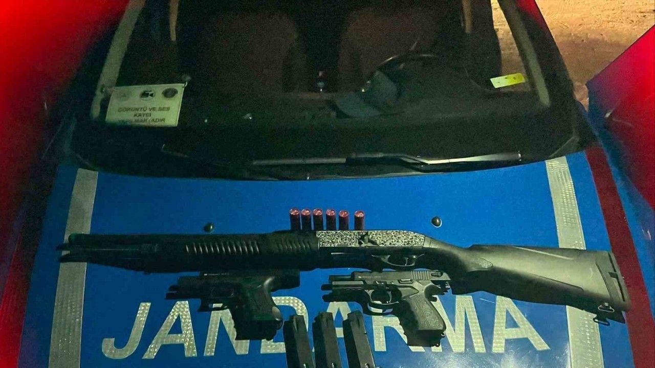 Şüphelilerin üzerinde ve olay yerinde yapılan aramalarda, 1 adet av tüfeği, 2 adet kurusıkı tabanca, 3 şarjör ve 24 fişek ele geçirildi.
