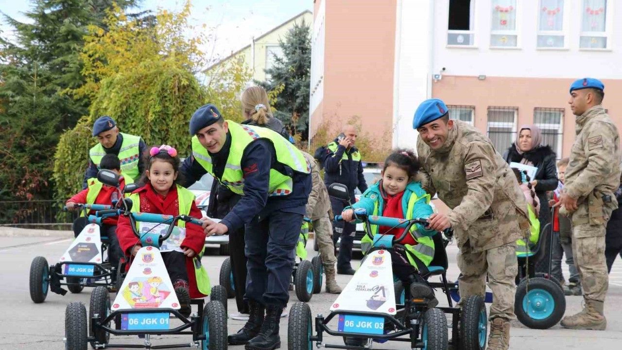 Uygulamalı trafik kuralları anlatımları etkinliğine Trafik Daire Başkanı Jandarma Albay Özgür Ecevit Taşçı ve İl Jandarma Komutanı Albay Sadık Gülecen de katıldı.