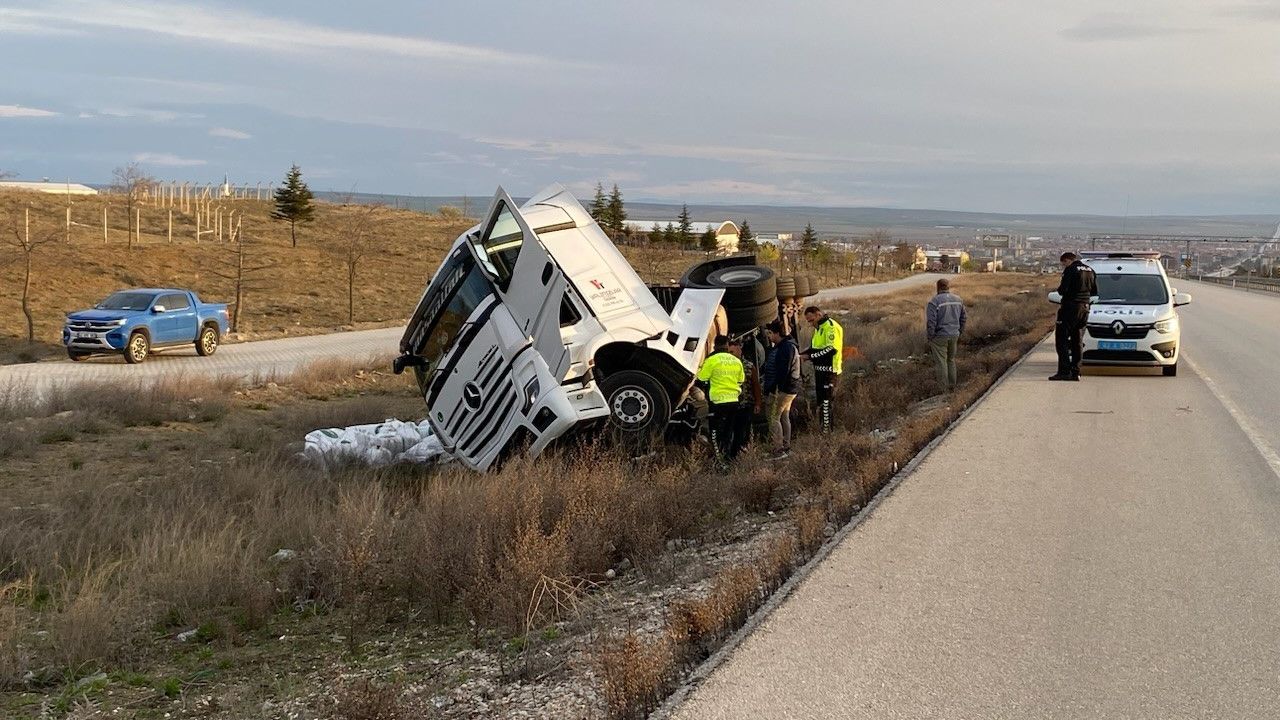 Konya’nın Kulu ilçesinde gübre yüklü tır kontrolden çıkarak şarampole devrildi.