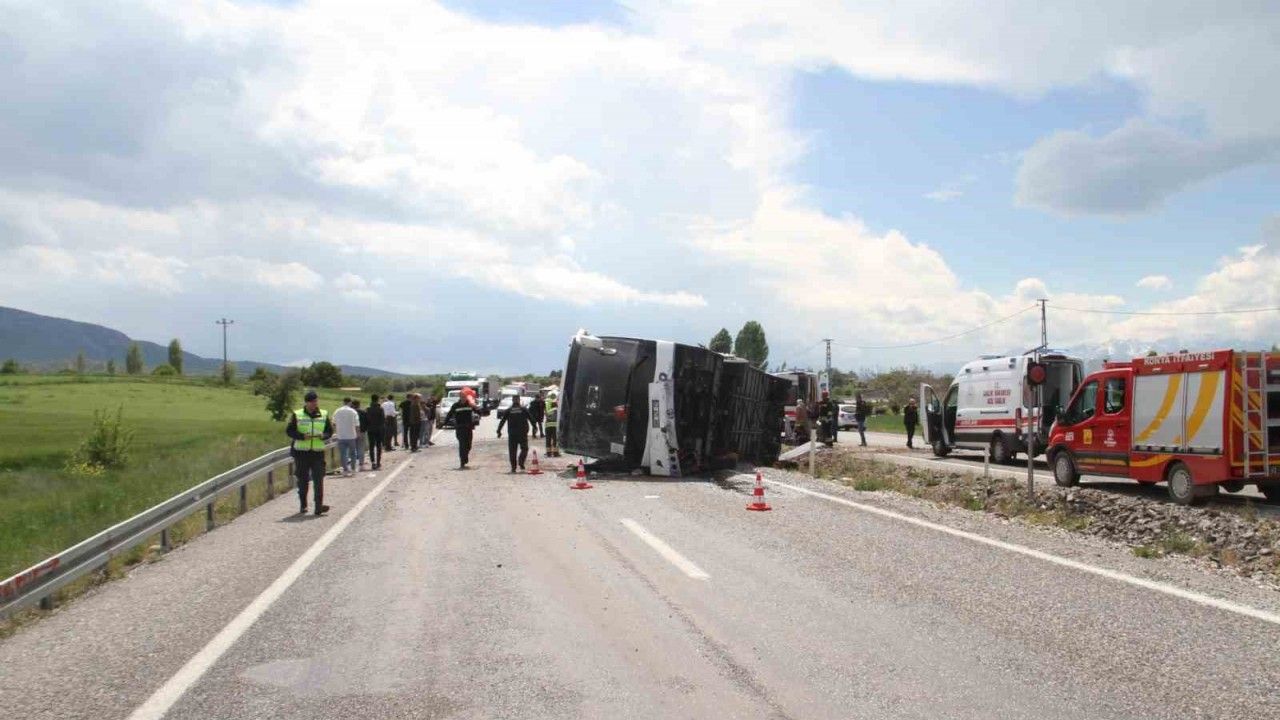 Konya’nın Beyşehir ilçesinde kayganlaşan yolda devrilerek yan yatan otobüste 13 kişi yaralandı.