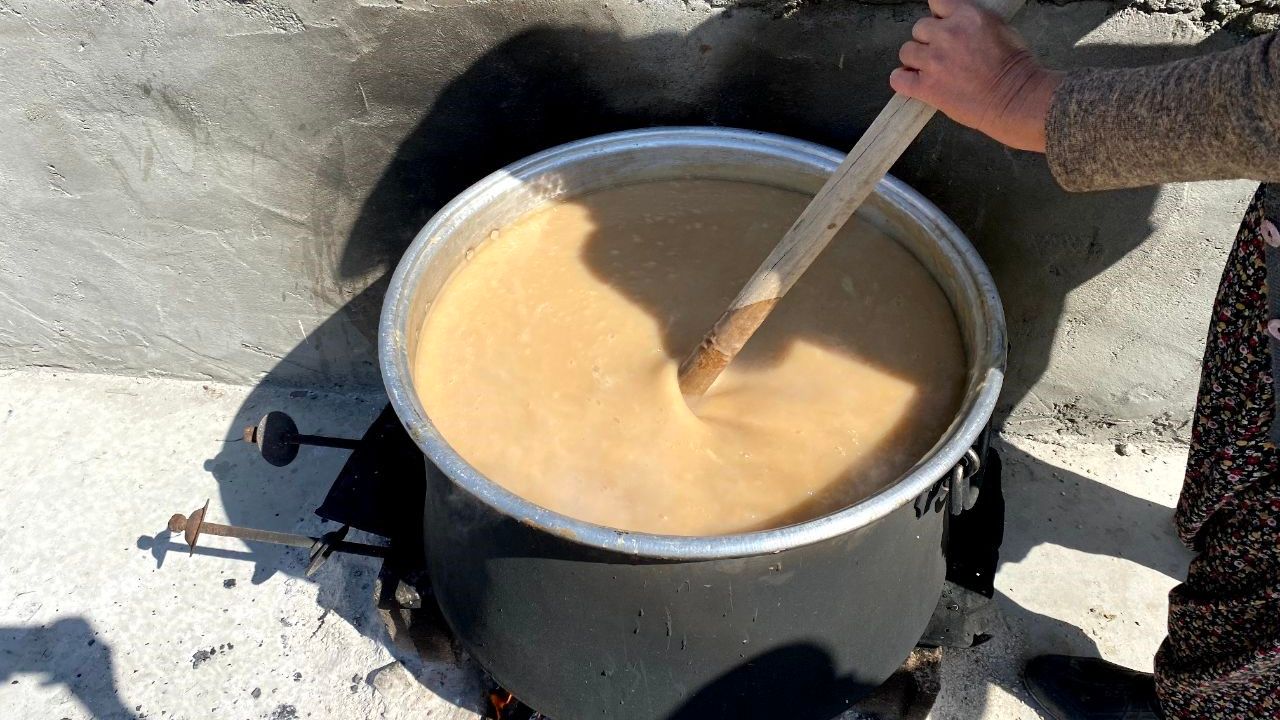 Geleneksel olarak yüzyıllardır Mardin’de bu tatlının yapıldığını söyleyen Özer, "Bağ bozumu zamanları Mardin’in yöresel üzümü marzona ile yapılır. Bölgede çok seçkin bir üründür marzora. İnce kabuklu ve çok tatlı bir üzümdür. Üzüm çok tatlı olduğu için tatlının hazırlanışında ekstra herhangi bir katkı maddesi şeker ilavesi yoktur. Dev kazanlara alınıp 3 saat kaynatıldıktan sonra kıvam alır. Tamamen doğal olduğu için ufak çocukların bile rahatlıkla yiyebileceği geleneksel yöresel bir tatlımızdır" diye konuştu.