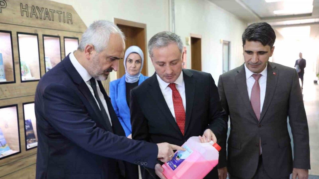 Karagöz, ilk olarak "Nuh’un Gemisi" şeklinde tasarlanan kütüphaneyi ve TOBB Mesleki ve Teknik Anadolu Lisesi Kimya Teknolojisi bölümü öğrencileri tarafından Ağrı Dağı markasıyla üretilen hijyen malzemelerinin sergilendiği stantları gezdi. Burada Kökrek’ten kütüphane ve hijyen malzemeleri hakkında bilgi alan Karagöz, makama geçerek bir süre Kökrek ile görüştü.