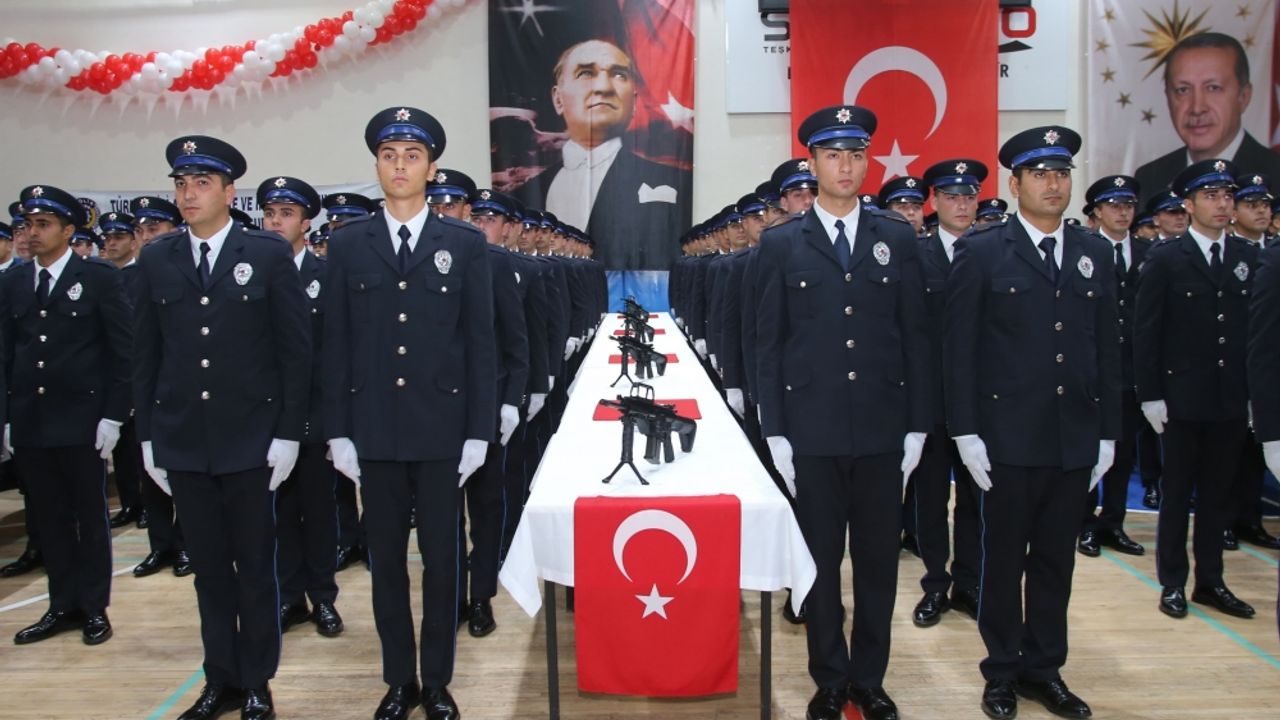 Eğitim sürecinin ardından 15 kente atamaları yapılan 236 polisin ant içme ve diploma töreni, okulun spor salonunda yapıldı.