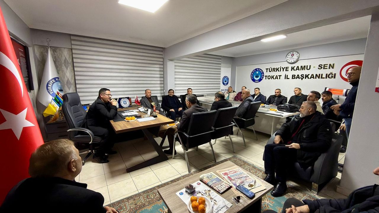 Yücel, Tokat İl Başkanı Mustafa İpek ile birlikte gerçekleştirdiği ziyaretler kapsamında, Türkiye Kamu-Sen’in Tokat’taki altı farklı sendikasının şube başkanlarını makamlarında ziyaret etti. Görüşmelerde, çeşitli kamu çalışanı gruplarının temsilcileriyle samimi bir sohbet ortamında fikir alışverişinde bulunuldu.