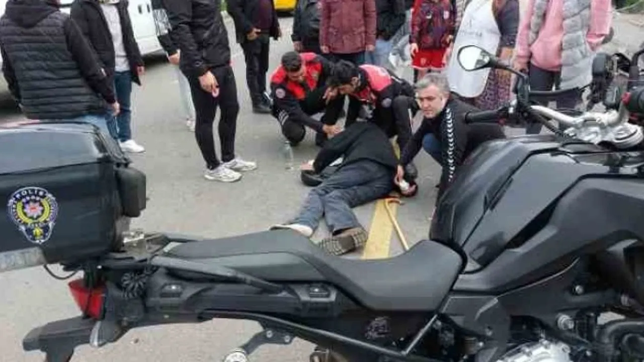 Samsun'da motosikletli yunus polisinin yolu karşıya geçmek isteyen yaşlı adama çarptığı kazada 1 kişi yaralanırken, kaza anı güvenlik kamerasına yansıdı.