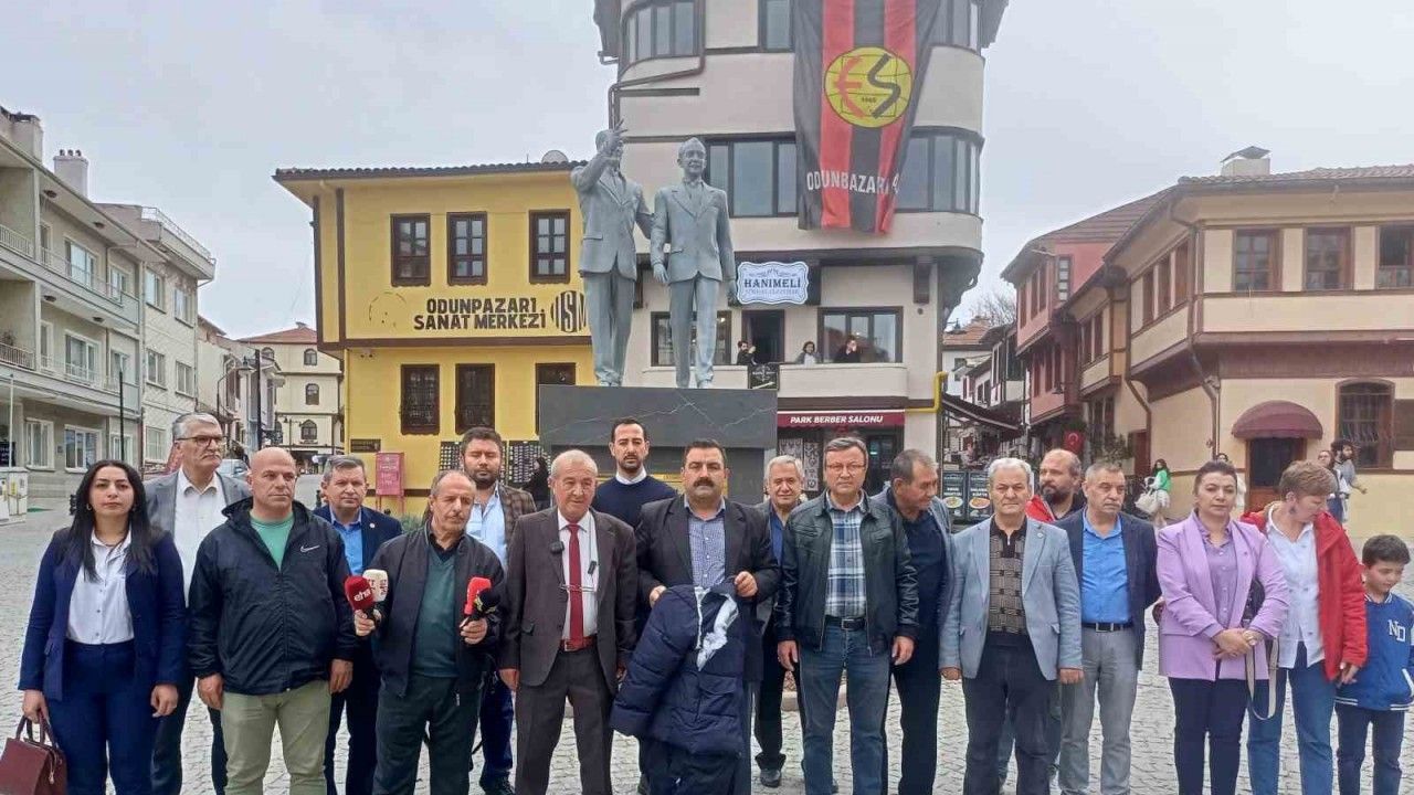 Odunpazarı Muhtarlar Derneği üyeleri, önceki gün özel mülk olan araziye çöp ve inşaat malzemesi dökülmesine engel olmaya çalışırken darp edilen Orhangazi Mahallesi Muhtarı Hüseyin Erdemir’e destek olmak için basın açıklaması yaptı.
