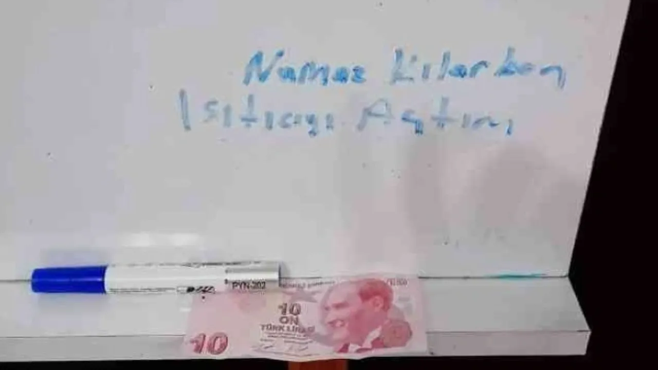 Çorum'da bir genç camide namaz kıldığı sırada elektrikli ısıtıcıyı çalıştırdı. Gencin namazın ardından ilan panosuna bıraktığı 10 TL para ise yürekleri ısıttı.