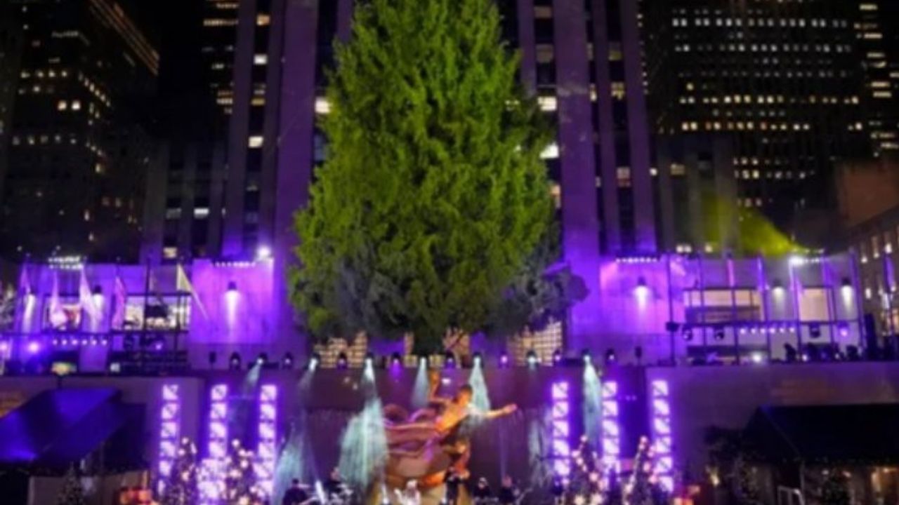 New York Rockefeller Center önündeki Noel Ağacı bir törenle ışıklandırıldı. Tören sırasında bir grup Filistin destekçisi protesto düzenledi. Özlem Özgür Yörekli - abdpost.com / ABD (İGFA) - Amerika Birleşik Devletleri New York eyaletinde Rockefeller Center önündeki Noel Ağacı bir törenle ışıklandırıldı.
