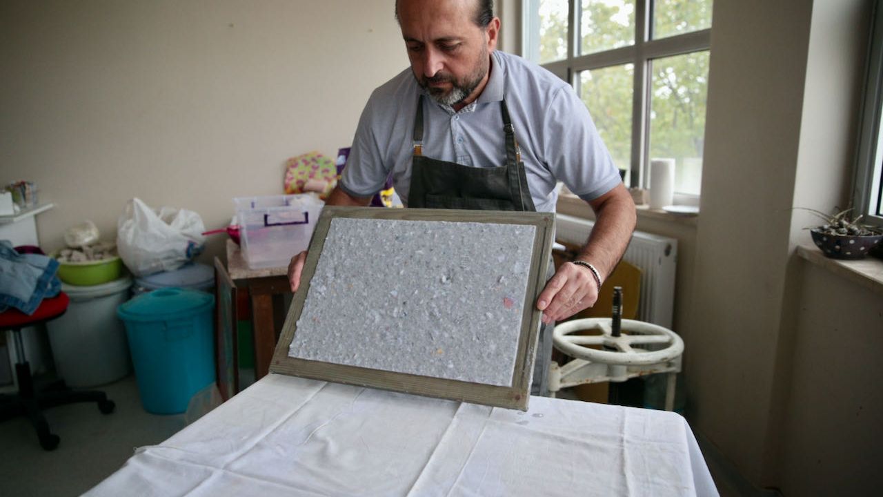 Aksoy, atık kağıtları nasıl değerlendireceklerini araştırırken geri dönüşümden faydalanmaya karar verdiklerini ve atölyeyi açarak üretime başladıklarını anlattı.