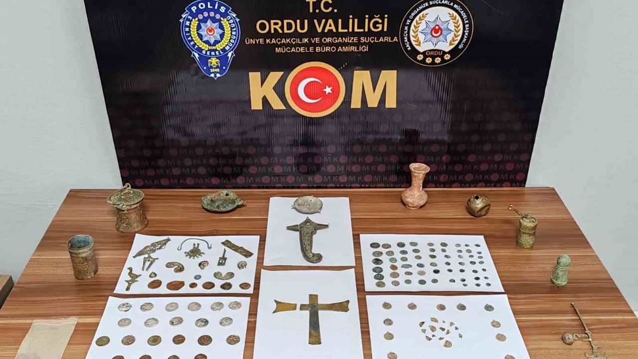 İl Emniyet Müdürlüğü Kaçakçılık ve Organize Suçlarla Mücadele Şube Müdürlüğü ekipleri, Fatsa ilçesinde ikamet eden bir şahsın elinde tarihi objeler olduğunu ve bunları satmak için müşteri aradığı yönünde bilgiye ulaştı. Bunun üzerine Fatsa İlçe Emniyet Müdürlüğü görevlileri ile birlikte şüphelinin ev ve işyerinde yapılan aramalarda 133 adet çeşitli tarihi obje ile 10 gram ağırlığında altın tozu ele geçirildi.