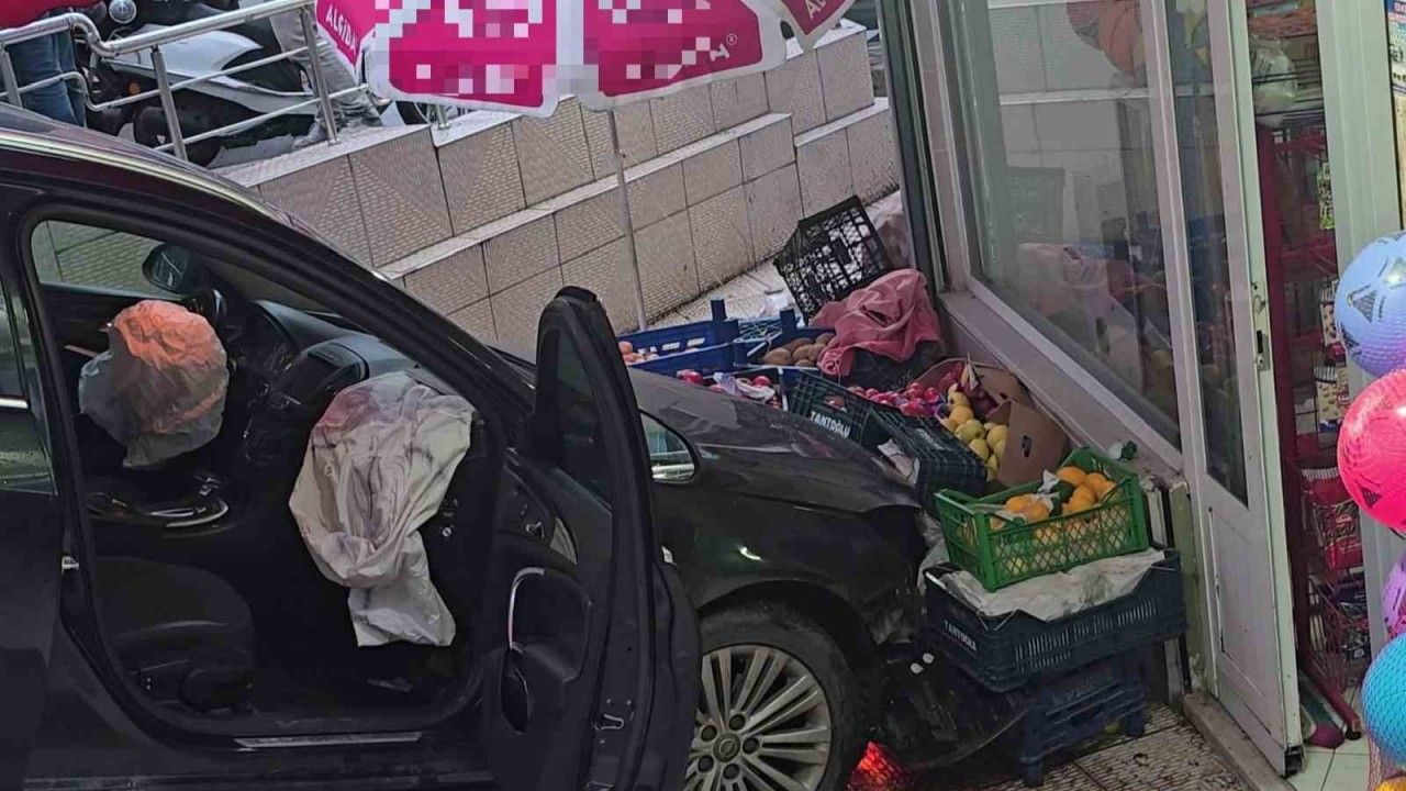 Kazada her iki araç sürücüsü yara almazken, olay anında markette kimsenin bulunmaması faciayı önledi.