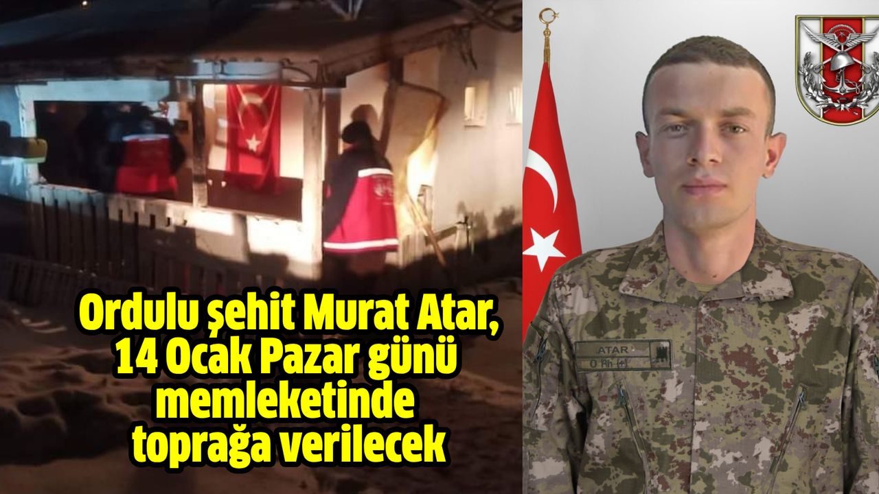 Ordulu Şehit Murat Atar,14 Ocak Pazar günü memleketinde toprağa verilecek