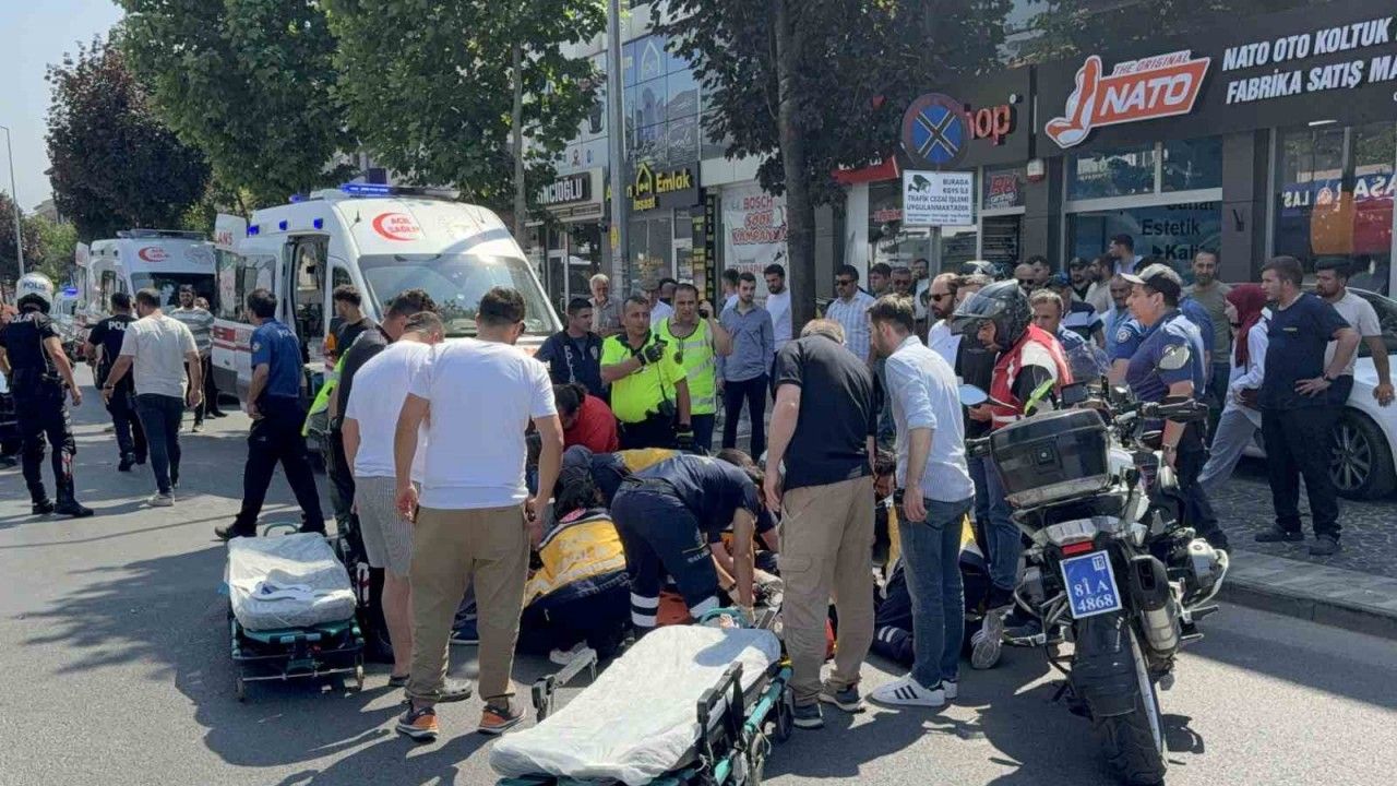 Düzce’de otomobil ile yunus polislerinin kullandığı motosikletin çarpıştığı kazada 2 polis yaralandı.