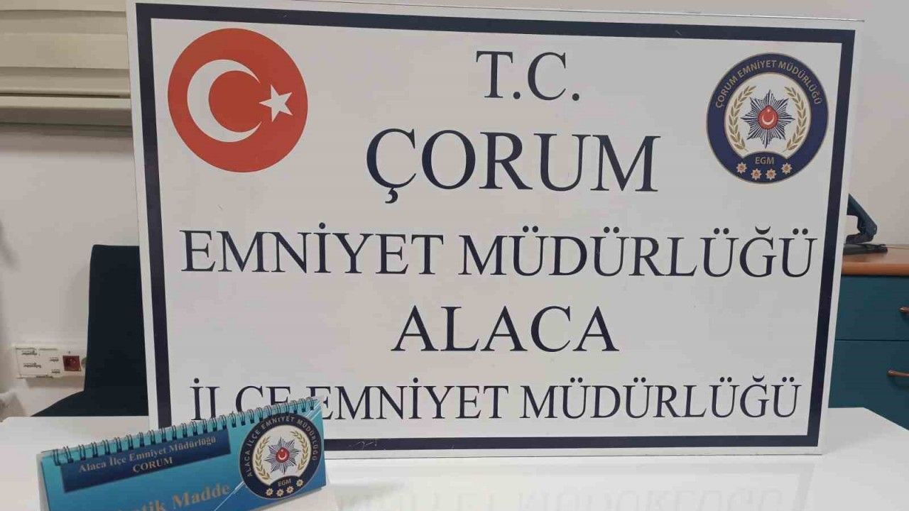 Edinilen bilgiye göre, Alaca İlçe Emniyet Müdürlüğü ekipleri, Ayhan Mahallesi’ndeki devriye görevleri sırasında şüphelendikleri K.Ö., İ.B. ve Y.Ç. isimli şahısların kimlik kontrolünü yapmak istedi. Polis ekiplerini fark eden şüpheliler yakalanmamak için koşmaya başladı. Şüpheliler kısa süreli kovalamacayla yakalandı. Şahısların kaçarken yere attıkları poşet içerisinde de tütüne emdirilmiş 46,7 gram sentetik uyuşturucu madde ele geçirildi.