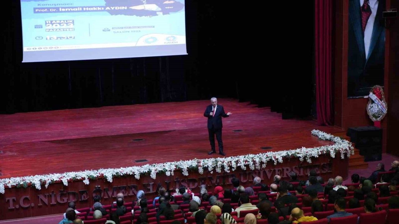 Şehit Ömer Halisdemir Kongre ve Kültür Merkezi’nde düzenlenen etkinliğe, Niğde Ömer Halisdemir Üniversitesi Rektörü Prof. Dr. Hasan Uslu, Fakülte Dekanları ile akademisyenler ve öğrenciler katıldı. Etkinlikte konuşan Prof. Dr. İsmail Hakkı Aydın mesleki tecrübelerini paylaşırken bilimin geçmişten günümüze kadar olan sürecine de değindi. Gerçekleştirilen konferansta, beynin yapısını anlatan Prof. Dr. Aydın; beynin bilgi depolamaktan ziyade, evrenin refahına katkı sunmak için bilgi üretmek ve sorunlara çözüm bulmakla mükellef olduğunu, sonsuz kapasiteye sahip bir bilgisayar niteliği taşıyan beynin sırlarını çözdükçe nasıl çalıştığının daha iyi anlaşılacağını söyledi.