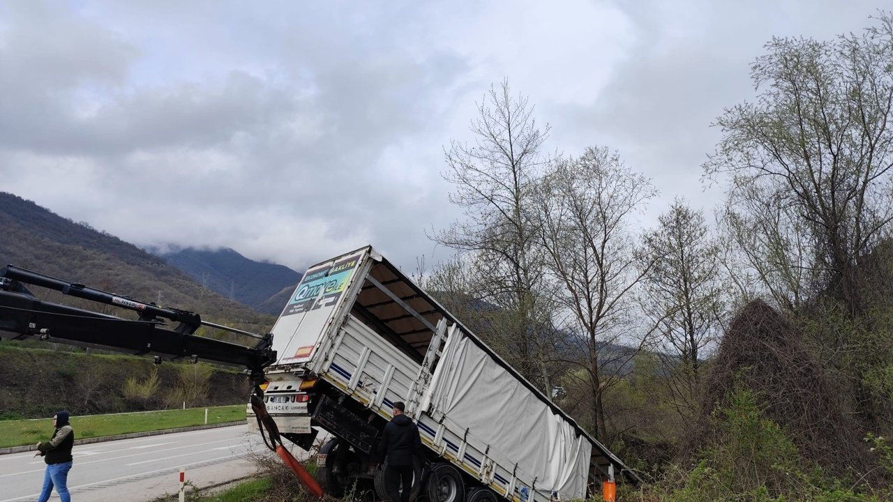 Erzurum plakalı olduğu öğrenilen İ. Ç. yönetimindeki tır, Reşadiye istikametinden Niksar yönüne doğru ilerlediği sırada, Yeni Darıderesi köyü mevkiinde henüz belirlenemeyen bir nedenle kontrolden çıktı. Sürücüsünün direksiyon hakimiyetini sağlamaya çalışmasına rağmen başarılı olamadığı araç, savrularak yol kenarında bulunan dere yatağına devrildi. Çarpmanın şiddetiyle tırda ve çekicide büyük çapta maddi hasar meydana geldi.