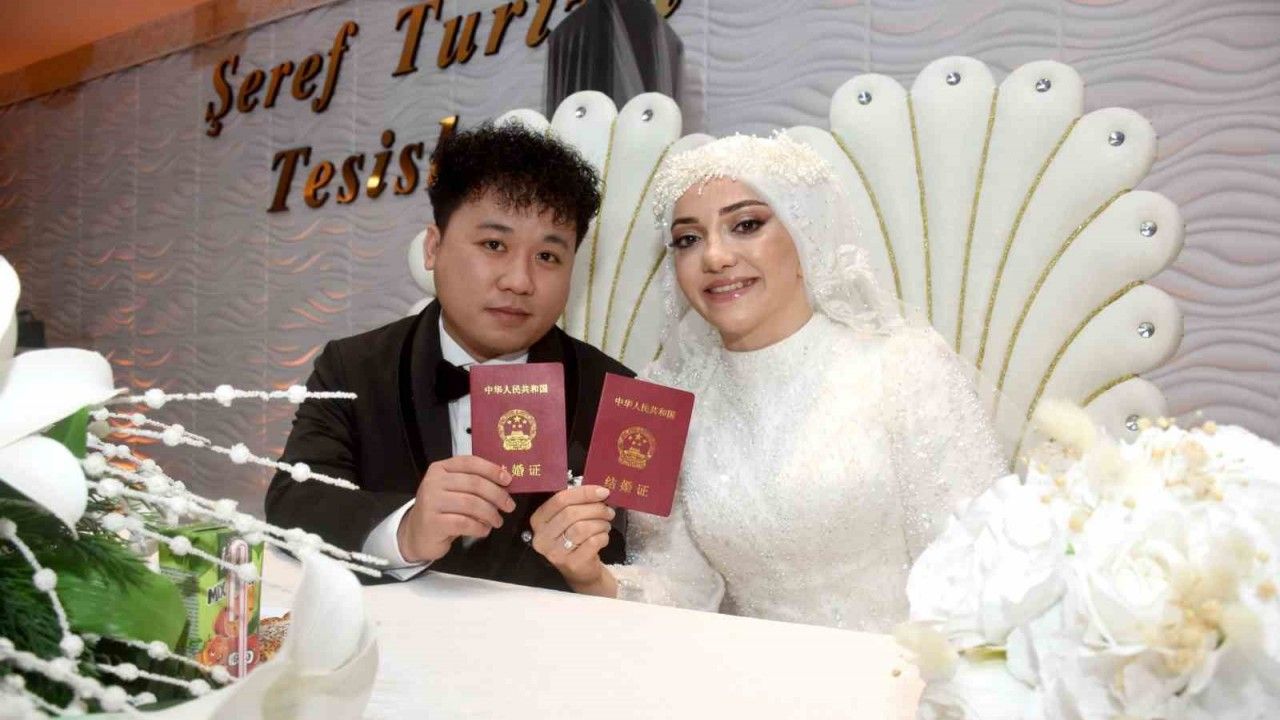 Ortak arkadaşlar aracılığı ile tanışan Rizeli kız ile Çinli genç, Çayeli ilçesinde dünya evine girdi.