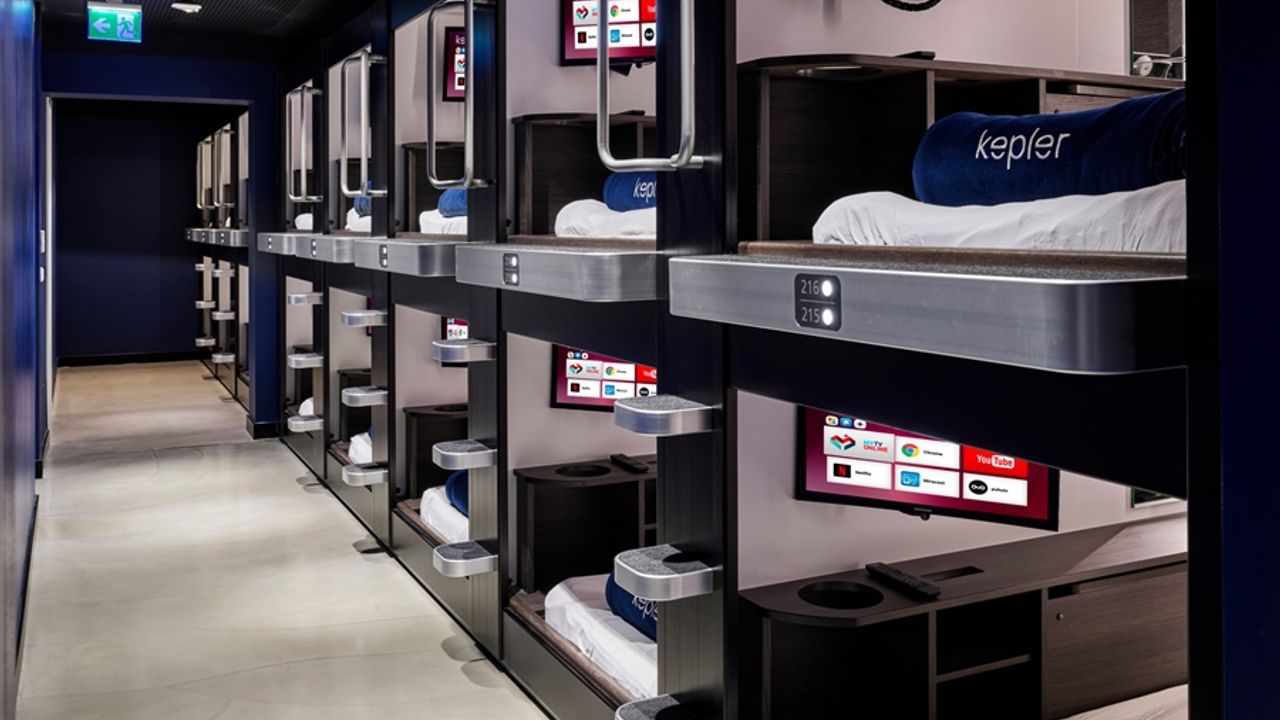 Sabiha Gökçen Havalimanı pasaport kontrol noktası sonrasında asma kat alanında yolculara hizmet veren Kepler Uyku Kabinleri, seyahat yorgunluğunu zevkli bir molaya dönüştürüyor.