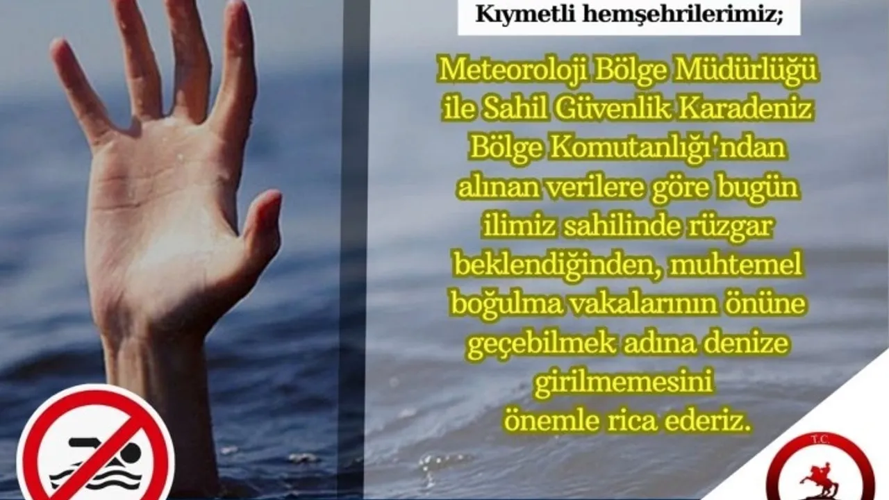 Samsun Valiliği vatandaşlara rüzgarlı havalarda denize girmemeleri uyarısında bulundu.